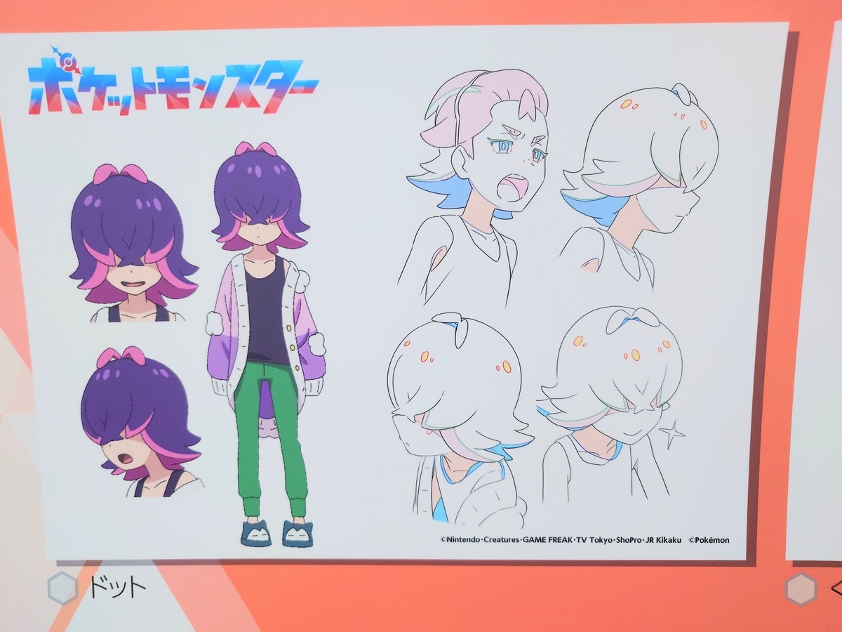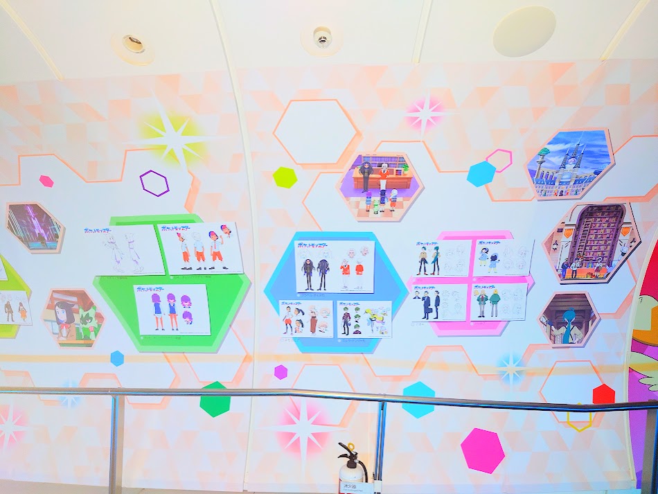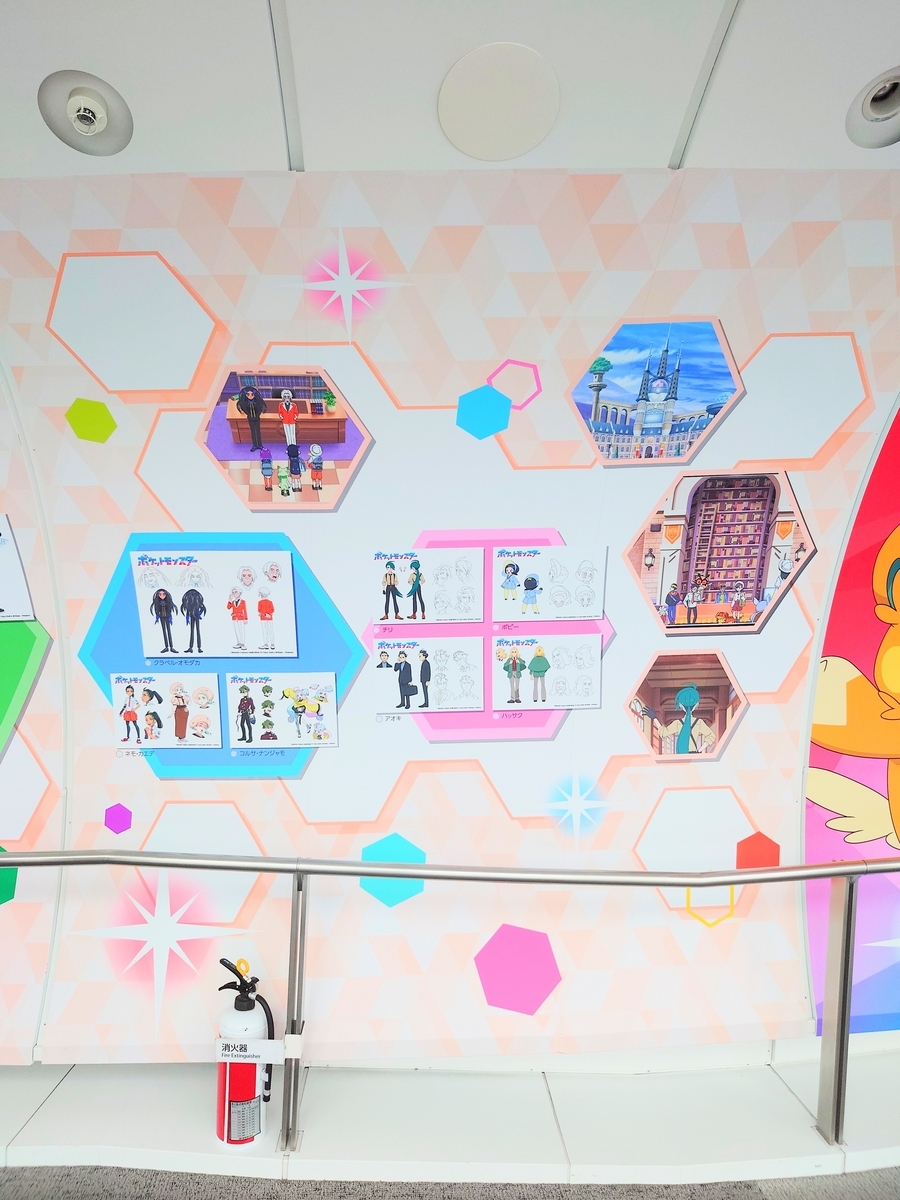 展望回廊を半分ほど登った辺りからアニポケの設定資料画が展示されていました。