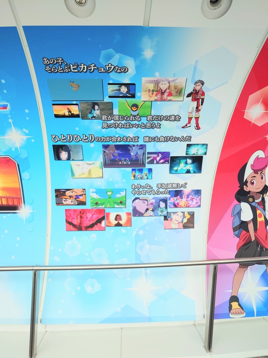 そこからは展望回廊の内壁に沿ってずらーっとアニポケのパネルが展開されていました。